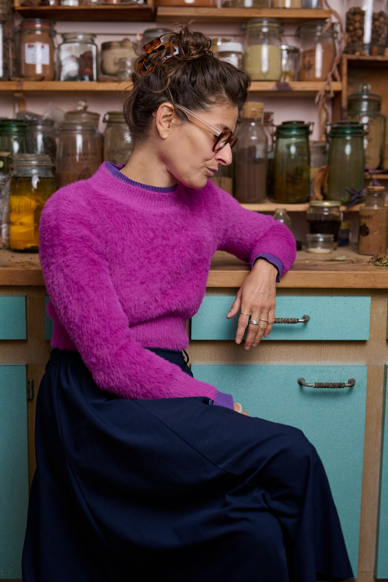 Avec la teinture végétale, je fais perdurer mon rapport privilégier avec la nature que j’avais enfant. J’aime la poésie que ce médium amène dans mon quotidien avec notamment les balades et le glanage des végétaux. Mais cela demande également beaucoup d’exigence : un regard aiguisé sur la nature, la reconnaissance botanique, être dans l’instant présent, beaucoup de patience et d’humilité. Il y a aussi le séchage des plantes, la mise en poudre, de longues préparations des tissus, l’extraction des plantes et enfin le bain de teinture. Une activité chronophage mais qui en vaut la peine tant les possibilités créatives sont immenses et les couleurs si vibrantes.